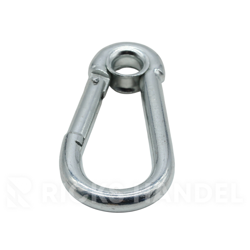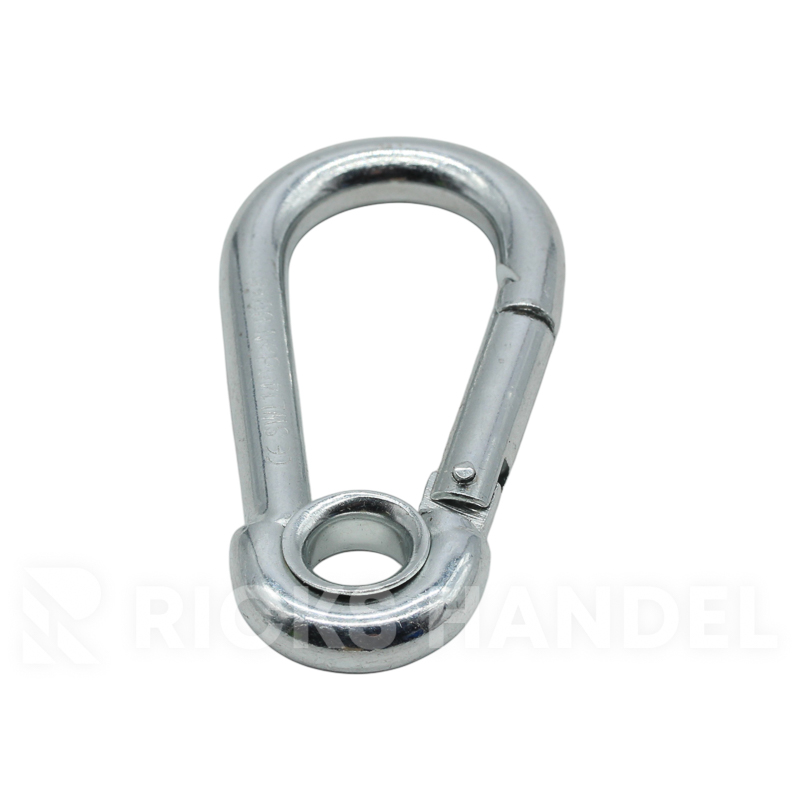 Karabijn haak met oog Lengte: 80 mm Materiaal dikte: 8 mm Breeksterkte: 140 daN